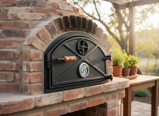 Cast Iron Pizza Oven Door with Thermometer | Handmade Argentine Oven Door for Wood-Fired Ovens