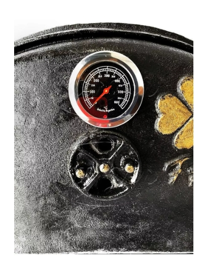 Our cast aluminum oven door features a charming clover design, combining style and functionality. Equipped with a pyrometer for precise temperature control, this door is perfect for those who seek efficient and accurate cooking. Additionally, it includes an air intake regulator that allows you to adjust the airflow according to your culinary needs.